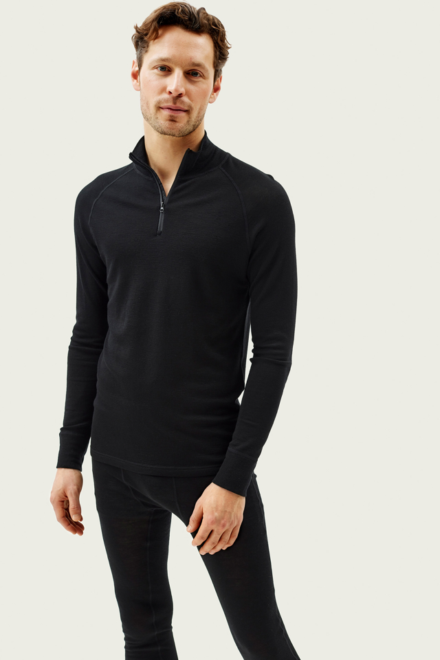 Klassisk ulltrøye med zip til herre som er laget i merinoull med naturlige egenskaper som holder deg varm, tørr og komfortabel – uansett aktivitet. Den har en sporty og fleksibel passform med half-zip i halsen for enkel ventilasjon og justering. Ullen er både isolerende, fukttransporterende og lukthemmende, og passer like godt til friluftsliv som til hverdagsbruk.